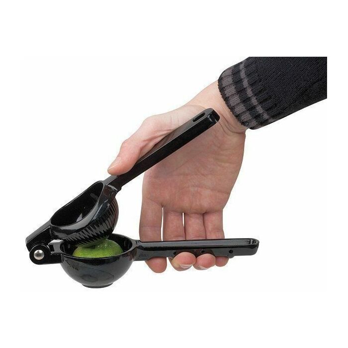 - flache Seite in die Pressenhälfte legen und Saft auspressen