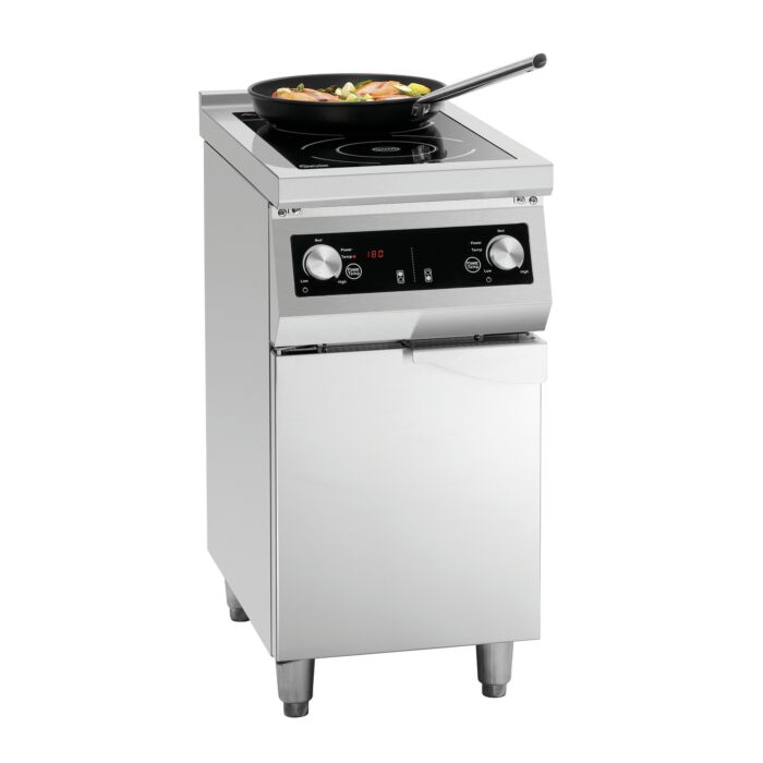 Mit dem 2-Felder Induktionsherd hat man einen platzsparenden und zuverlässigen Partner in der Küche. Das Glaskochfeld bietet ausreichend Platz zum Arbeiten und die 8,5 kW Gesamtleistung können entweder über Leistungsstufen oder Temperatur gesteuert werden. Der durch eine Flügeltür geschlossene Unterbau bietet Platz für Töpfe und Pfannen.