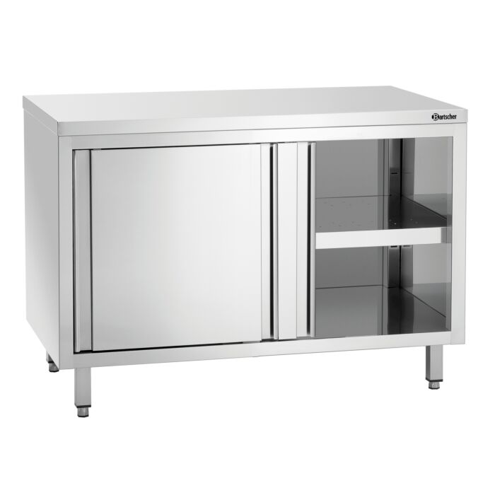 Bartscher Arbeitsschrank B 1200 x T 700 x H 850 mm, mit Schiebetüren und Zwischenboden, ohne Aufkantung