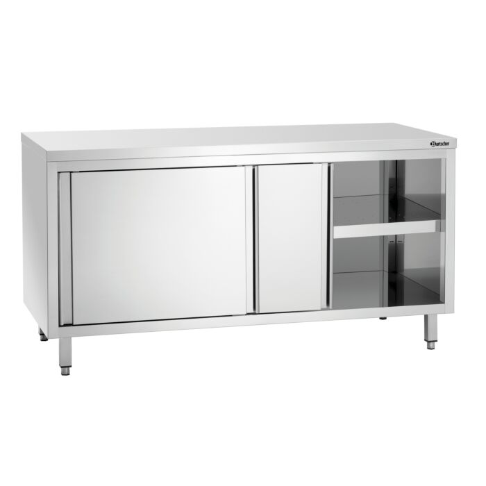 Bartscher Arbeitsschrank B 1600 x T 700 x H 850 mm, mit Schiebetüren und Zwischenboden, ohne Aufkantung
