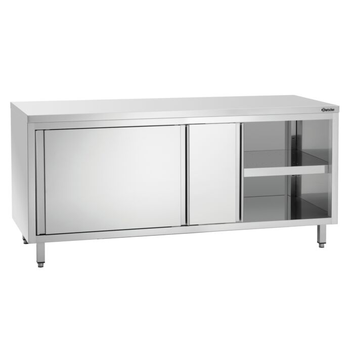 Bartscher Arbeitsschrank B 1800 x T 700 x H 850 mm, mit Schiebetüren und Zwischenboden, ohne Aufkantung