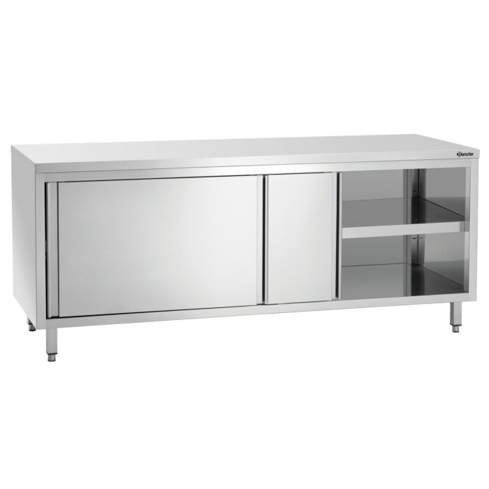 Bartscher Arbeitsschrank B 2000 x T 700 x H 850 mm, mit Schiebetüren und Zwischenboden, ohne Aufkantung