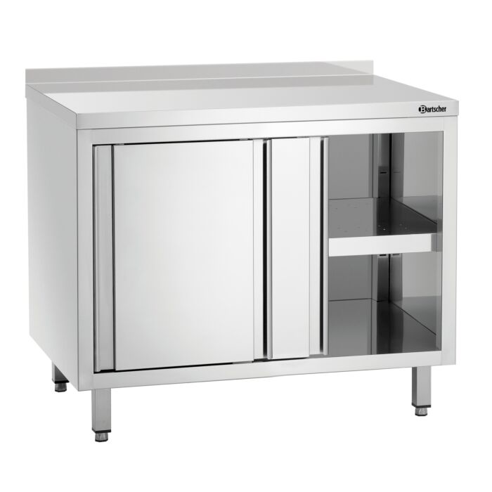 Bartscher Arbeitsschrank: B 1000 x T 700 x H 850 mit Schiebetüren und Zwischenboden, Arbeitsplatte mit Aufkantung
