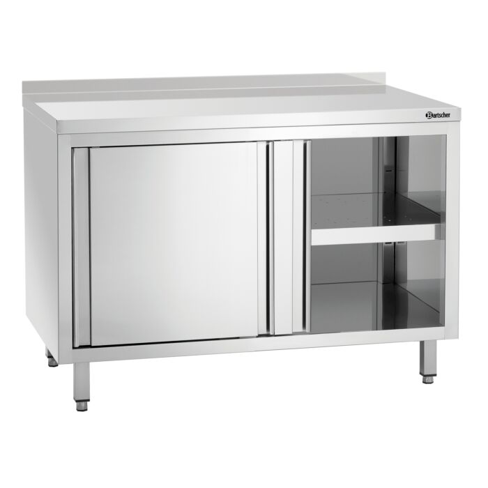 Bartscher Arbeitsschrank, B 1200 x T 700 x H 850 mm, mit Schiebetüren und Zwischenboden, mit Aufkantung