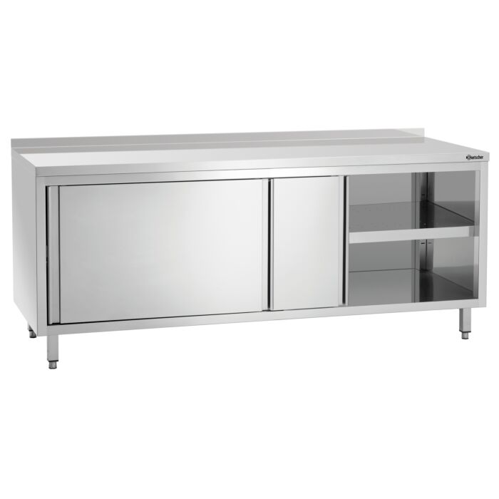 Bartscher Arbeitsschrank, B 2000 x T 700 x H 850 mm, mit Schiebetüren und Zwischenboden, mit Aufkantung