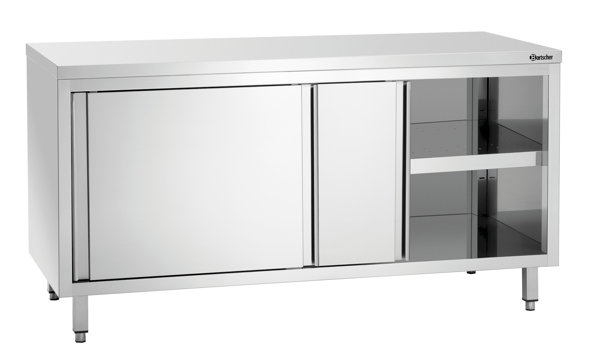 Bartscher Arbeitsschrank B 1600 x T 700 x H 850 mm, mit Schiebetüren und Zwischenboden, ohne Aufkantung