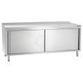Bartscher Arbeitsschrank, B 2000 x T 700 x H 850 mm, mit Schiebetüren und Zwischenboden, mit Aufkantung