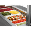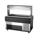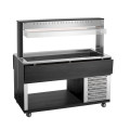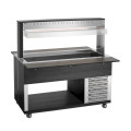 Die mobile Buffetlösung im modernen Holzdesign – Der Buffetwagen mit Hustenschutz und LED-Beleuchtung fasst 4 GN-Behälter 1/1 GN und hält Speisen zuverlässig am Buffet kalt.