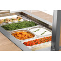 Die mobile Buffetlösung im modernen Holzdesign – Der Buffetwagen mit Hustenschutz und LED-Beleuchtung fasst 4 GN-Behälter 1/1 GN und hält mit dem Wasserbad-Prinzip Speisen schonend und ansprechend am Buffet warm.