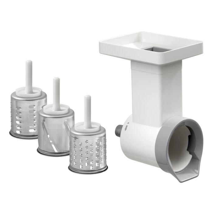 - Set bestehend aus: 1 Birchertrommel (Trommel mit Wellenschliff), 1 Gemüseschneider, 1 Scheibentrommel