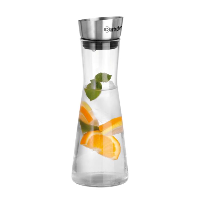 Die Glaskaraffe mit 750 ml Fassungsvermögen überzeugt schon auf den ersten Blick durch das elegante Design. Zudem bietet der Deckel einen Ausgießer mit einer sich automatisch öffnenden und schließenden Verschlussklappe aus Edelstahl. Das integrierte Sieb ermöglicht ein unbedenkliches Ausgießen von Getränken kombiniert mit Eis oder Früchten.