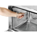 - Eigenschaften: Doppeltürverglasung, Abgerundete Backkammer, Auflageschienen herausnehmbar, Signalton nach Ablauf der Zeit