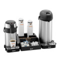 Gut sortiert und platzsparend können Becher, Rührlöffel und Co. mit der Z50 an Buffets und im Kaffee-Self-Service- oder Kassen-Bereich angeboten werden. Der Clou aber ist das Stecksystem: Je nach individuellem Bedarf sind die optional erhältlichen Abtropfschalen für Isolierkannen mit der Kaffeestation variierbar.