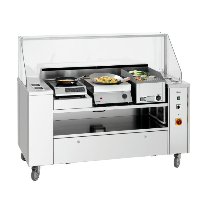 Wie aus einem Guss – die mobile Kochlösung für Front-Cooking, Catering und Event. Flexibel bestückbar mit den passenden Auftischgeräten und entsprechendem Zubehör ermöglicht sie einen flexiblen Einsatz. Die Geräte können bei unterschiedlichen Anforderungen einfach und beliebig gewechselt werden.