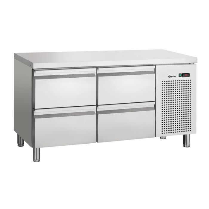 1 Gerät – doppelter Nutzen: die Umluftkühlung sorgt für eine konstante und gleichmäßige Kühltemperatur im Innenraum des Kühltisches mit 4 Schubladen. Mit der hochwertigen und robusten Edelstahloberfläche lässt sich das Gerät perfekt in jede Küche integrieren und zusätzlich als Arbeitsfläche nutzen.