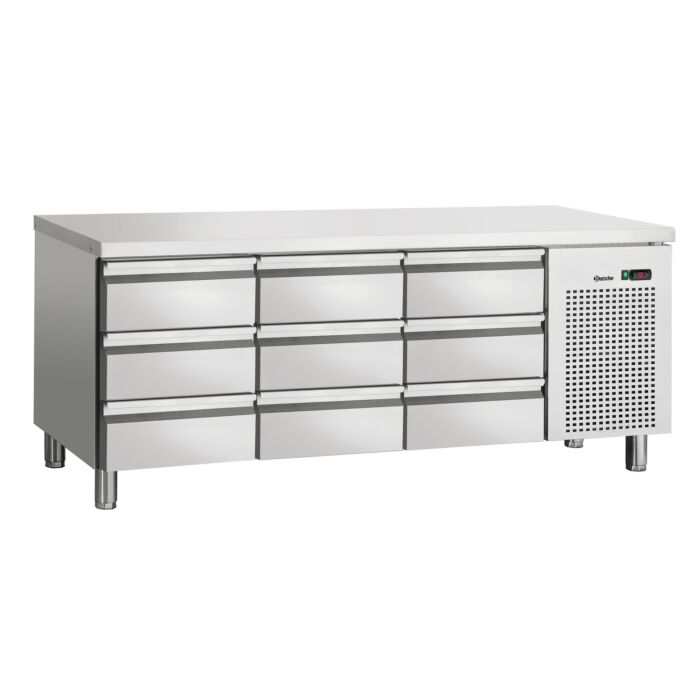 1 Gerät – doppelter Nutzen: die Umluftkühlung sorgt für eine konstante und gleichmäßige Kühltemperatur im Innenraum des Kühltisches mit 9 Schubladen. Mit der hochwertigen und robusten Edelstahloberfläche lässt sich das Gerät perfekt in jede Küche integrieren und zusätzlich als Arbeitsfläche nutzen.