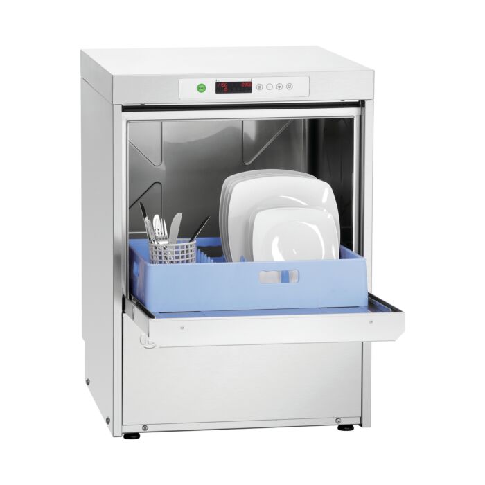 Der Alleskönner unter den Spülmaschinen eignet sich optimal für Gläser und Geschirr mit einem Korbmaß von 500 x 500 mm. Dank des geräumigen Innenraums finden aber auch Backbleche, Tabletts, Fleischerkisten und vieles mehr bis 600 x 400 mm Platz.