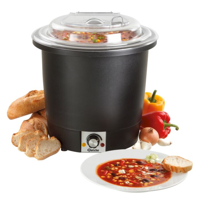 Der durchsichtige Polycarbonat-Deckel ermöglicht jederzeit einen Einblick in den Suppentopf. Kein umständliches überprüfen der Füllstände von Suppen oder Soßen - kein unnötiger Wärmeverlust.