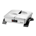 Der Tellerwärmer ist durch seine besondere Form sehr platzsparend und erwärmt bis zu zwölf Teller auf etwa 65 °C. Wird er mal nicht gebraucht, ermöglichen die Deckel eine hygienische und sichere Lagerung.