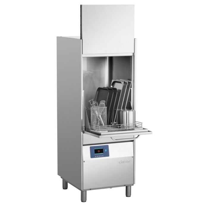 Die TS 665-1 R ist mit dem mitgelieferten Universalkorb und Tabletthalter für die Reinigung von sperrigen Spülgütern bestens geeignet. Sie sorgt für optimale Spülergebnisse bei Töpfen, Pfannen, Tabletts, Schüsseln und Schalen.
