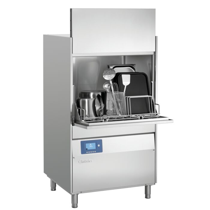 - Eigenschaften: Doppelwandige Tür als Arbeitsfläche nutzbar, Tiefe bei offener Klappe 1275 mm, Elektronischer Thermostopp, Plus-System (Nachspülpumpe, Break Tank, druckloser Boiler), 2 Spülarme mit je 1 Spülpumpe, Doppelsieb (Abfallsammler und Pumpensieb herausnehmbar), Waschwanne tiefgezogen mit Stufen, Einfaches Entnehmen des Filters, Senkrechtes, selbstreinigendes Pumpensieb, Selbstdiagnosesystem, Mehrfarbiger START-Bedienknopf, Mehrsprachiges Steuerungsmenü