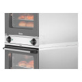 Platzsparend und praktisch – Der Verbindungsrahmen ermöglicht das sichere Stapeln von 2 Heißluftöfen AT90 oder AT120. Fest verschraubt ist kein Verrutschen möglich. So kann wertvoller Platz in der Küche, in Tankstellen, Kiosken oder Bäckereien eingespart werden.