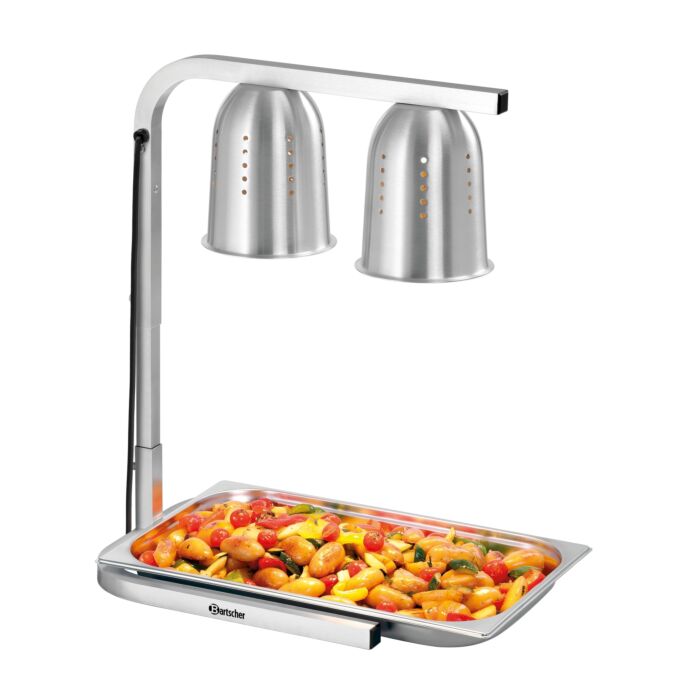 Ob an Buffets, bei Caterings oder in Kantinen – Die beiden Wärmelampen mit belüfteten Aluminiumreflektoren sorgen für eine zielgerichtete Wärmeabgabe. So können Speisen in Behältern mit einer Größe von bis zu 1/1 GN warmgehalten werden.