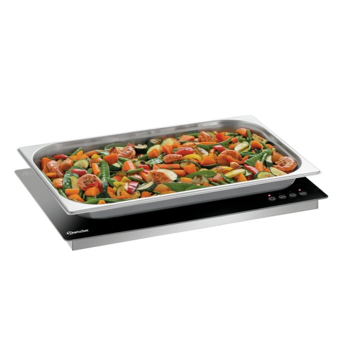 Ob als Auftisch- oder als Einbaugerät: Die Warmhalteplatte ist auch wegen des edlen schwarzen Designs für Buffets, die Speiseausgabe und Front-Cooking bestens geeignet. Die Auswahl von 3 Temperaturstufen erfolgt über eine einfache Bedienung via Touch-Control.