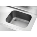 Die 1,2 m breite Vorabräumung mit Spüle ist ausgelegt für den linksseitigen Anbau an die Bartscher Durchschubspülmaschinen DS. Ein Grundboden bietet Abstellfläche für Spülkörbe.