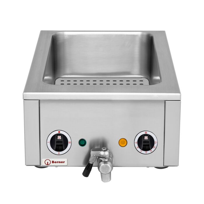 Mit 3-Leistungsstufen wählbar, dadurch energiesparende Nutzung. Der Kocher GN 1/1 150 mm ist mit einer Betriebsanzeigenlampe und Thermostat mit Heizanzeigelampe ausgestattet.