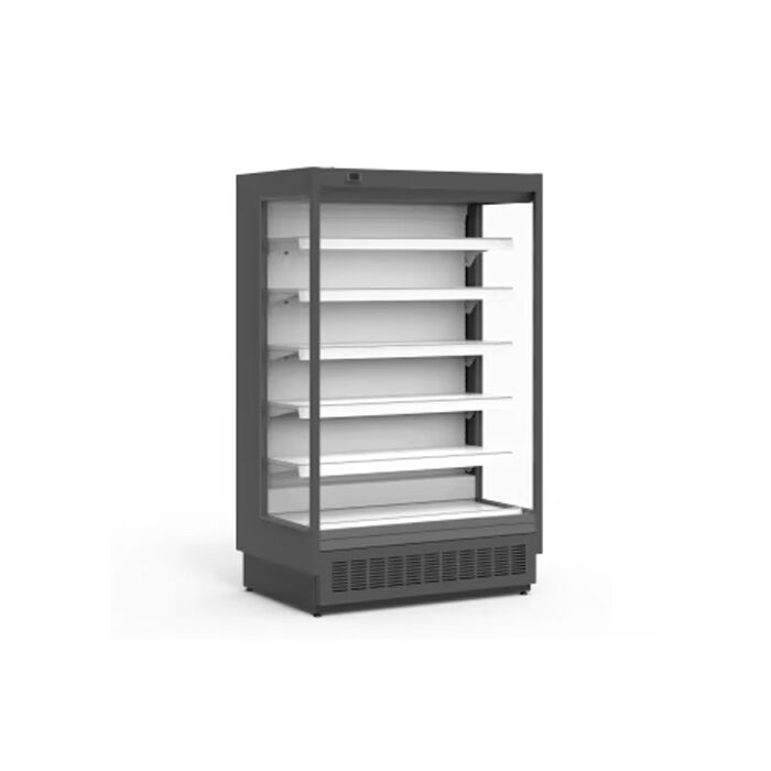 - Steckerfertige Kühlregal mit Panorama – Seitenwänden für die offene Warenpräsentation von Obst und Gemüse, Molkereiprodukten, Freinkost, Fleischprodukten sowie Frischfleisch und Geflügel