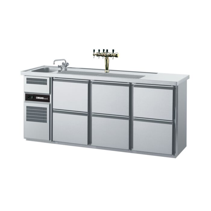 Ausführung Chromonorm Edelstahl Biertheke/Schanktheke 1 Becken + 6 Schubladen: