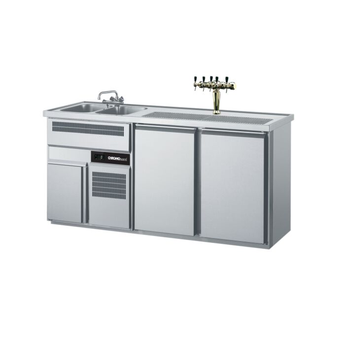 Ausführung Chromonorm Getränketheke/Ausschanktheke 2 Becken + 2 Türen: