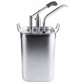 Vor dem erstmaligen Benutzen des Dispensers, empfiehlt es sich diesen mit handwarmen ( nicht heißem!) Wasser auszuspülen. Stellen Sie den Dosierspender auf den Edelstahlbehälter und drücken den Deckel fest an. Durch mehrmaliges betätigen des Hebels pumpen Sie das Spülwasser hoch. Wiederholen Sie diesen Vorgang einige Male, bis die im Gerät vorhanden Luft ausgetreten ist und das Spülwasser fließt. Danach spülen sie das Gerät gründlich aus und füllen Ihre Saucen ein.