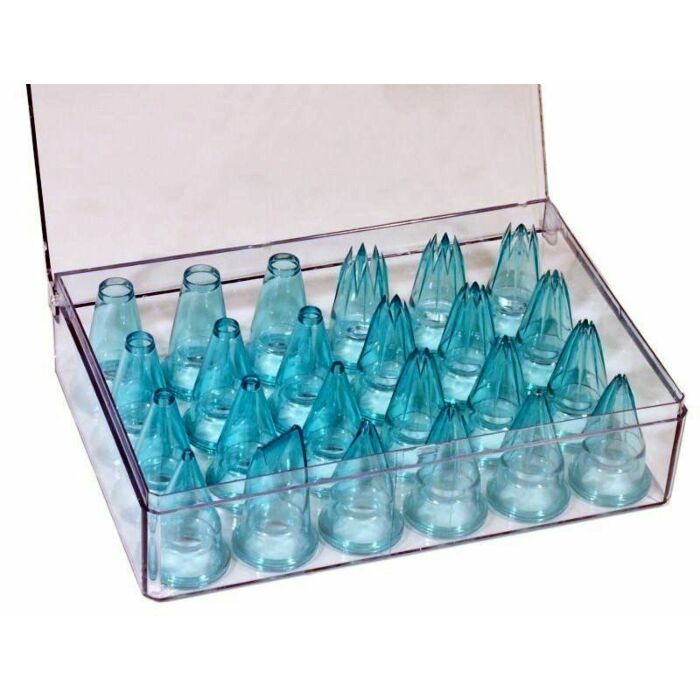 - 24 verschiedene (12 Sterne, 10 runde, 2 sonstige) Tüllen