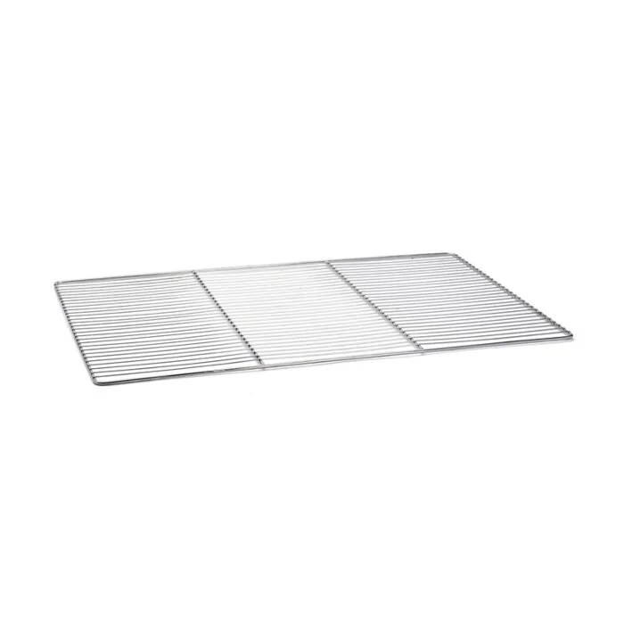 Profi-Backgitter aus Edelstahl. 2 oder 3 Querstreben je nach Modell. 3 Modelle sind für zahlreiche Verwendungszwecke erhältlich. Das Gitter wird für die heiße Zubereitung, das Auskühlen oder die Lagerung von Gebäck verwendet. Vielseitig: auch für kalte Zubereitungen, in einem Kühlschrank, Tiefkühlschrank oder Gefrierschrank verwendbar. Formstabiles, robustes Gitter, das nicht unter dem Gewicht des Gebäcks durchhängt. Hygienisch: leicht zu pflegen. Pflege: spülmaschinenfest.
