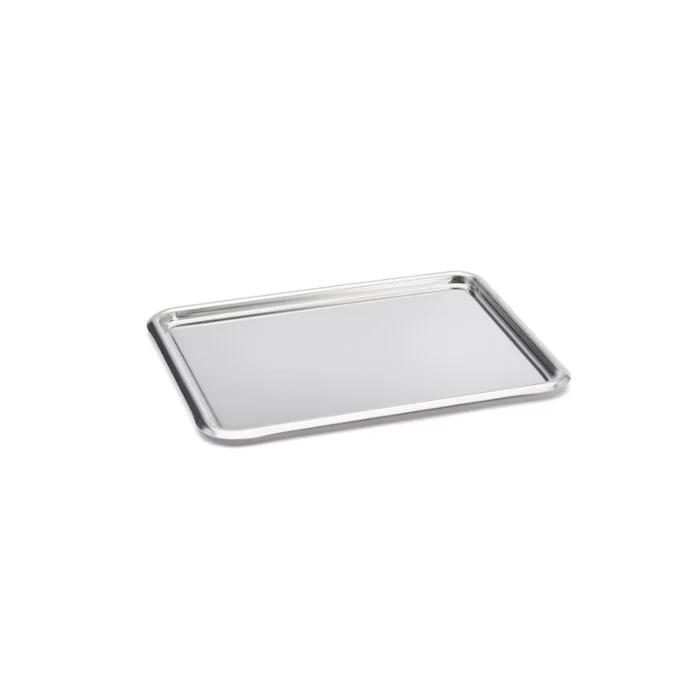 Backwarentablett aus Edelstahl mit abgerundeten Kanten, ideal für eine sehr elegante Präsentation von Gerichten und Gebäck im Schaufenster oder auf einem Büffet. Oberfläche: hochwertige Spiegelpolitur. Kann zur Aufbewahrung oder zur Beförderung verwendet werden. Beständig gegenüber sehr niedrigen Temperaturen und Feuchtigkeit. Robust: ein formstabiles Tablett. Hygienisch: leicht sauber zu halten, abgerundete Ecken für vereinfachte Reinigung. Pflege: spülmaschinenfest. Gelegentlich mit Spezial-Polierpaste für Edelstahl polieren, um den vollen ursprünglichen Glanz zurückzugewinnen. Größe: 24x19 cm