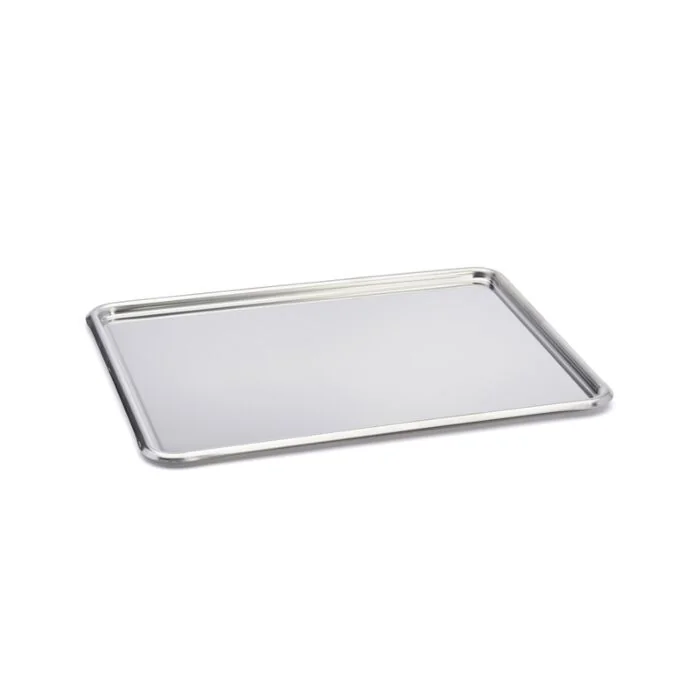 Backwarentablett aus Edelstahl mit abgerundeten Kanten, ideal für eine sehr elegante Präsentation von Gerichten und Gebäck im Schaufenster oder auf einem Büffet. Oberfläche: hochwertige Spiegelpolitur. Kann zur Aufbewahrung oder zur Beförderung verwendet werden. Beständig gegenüber sehr niedrigen Temperaturen und Feuchtigkeit. Robust: ein formstabiles Tablett. Hygienisch: leicht sauber zu halten, abgerundete Ecken für vereinfachte Reinigung. Pflege: spülmaschinenfest. Gelegentlich mit Spezial-Polierpaste für Edelstahl polieren, um den vollen ursprünglichen Glanz zurückzugewinnen. Größe: 31x24 cm