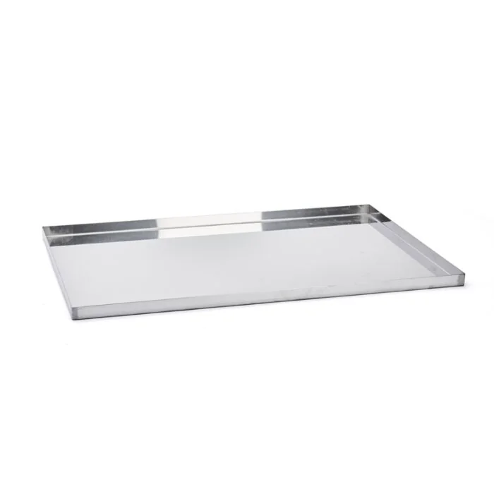 Rechteckiges Backblech aus Edelstahl mit geraden Kanten, zum Lagern von Speisen, für den Transport und das Arbeiten mit Kälte (Kühlen, Einfrieren, Tiefkühlen). Ideal für die elegante Präsentation von Speisen und Kuchen, dank der hochwertigen Spiegelpolitur. Auch für bestimmte unempfindliche Garvorgänge geeignet. Kombinierbar mit einer Silikonbackmatte oder mit Backpapier für das Kaltformen (leichteres Ausformen) und Backen. Geeignet als Unterlage für Formen, Ringe und Metallrahmen von de Buyer. Sehr beständig gegenüber sehr niedrigen Temperaturen und Feuchtigkeit. Robust: beständiges und formstabiles Backblech. Hygienisch: leicht sauber zu halten. Pflege: spülmaschinenfest. Gelegentlich mit Spezial-Polierpaste für Edelstahl polieren, um den vollen ursprünglichen Glanz zurückzugewinnen.