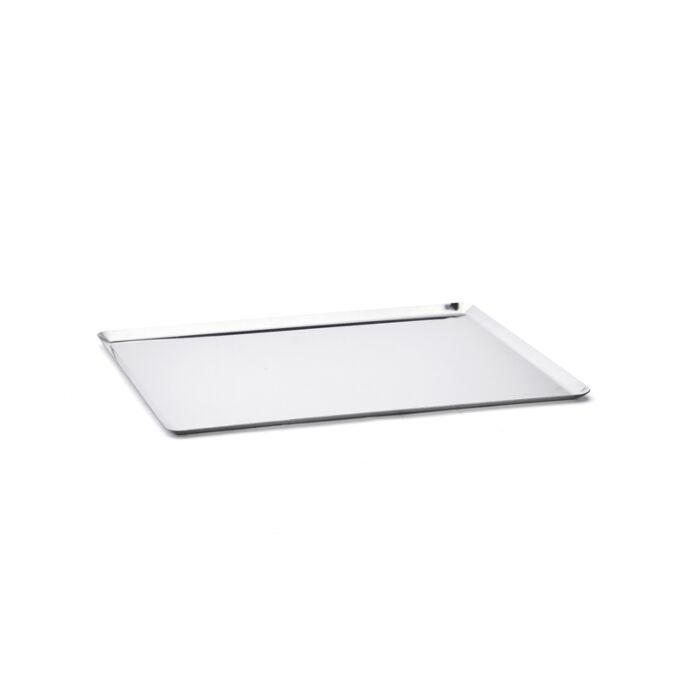 Rechteckiges Backblech aus Edelstahl mit schrägen Kanten, zum Lagern von Speisen, für den Transport und das Arbeiten mit Kälte (Kühlen, Einfrieren, Tiefkühlen). Ideal für die elegante Präsentation von Speisen und Backwaren, dank der hochwertigen Spiegelpolitur. Auch für bestimmte unempfindliche Garvorgänge geeignet. Kombinierbar mit einer Silikonbackmatte oder mit Backpapier für das Kaltformen (leichteres Ausformen) und Backen. Geeignet als Unterlage für Formen, Ringe und Metallrahmen von de Buyer. Voll beständig gegenüber sehr niedrigen Temperaturen und Feuchtigkeit. Robust: beständiges und formstabiles Backblech. Hygienisch: leicht sauber zu halten. Pflege: spülmaschinenfest. Gelegentlich mit Spezial-Polierpaste für Edelstahl polieren, um den vollen ursprünglichen Glanz zurückzugewinnen.