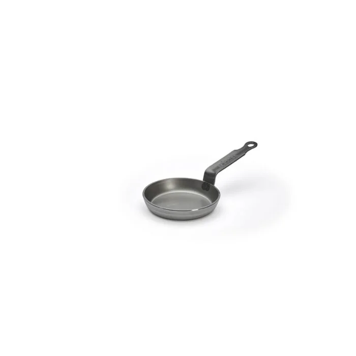 Pfanne mit geringem Durchmesser, ideal zum Backen von Blinis, Beignets und Pfannkuchen. Kochgeschirr der Produktreihe CARBONE PLUS aus dickem Weißstahlblech: rascher Temperaturanstieg, gleichmäßige Hitzeverteilung. Erreicht hohe Temperaturen: ermöglicht die Maillard-Reaktion; hervorragende Karamelisierung. Natürlicher Haftschutz: allmähliches Einbrennen der Pfanne, je mehr sie verwendet wird, umso weniger haftet sie. Unzertrennlicher vernieteter Stahlbandstiel. Tipp: mit wenig Fett vorheizen. Einbrennen vor der ersten Verwendung. Pflege: Mit Wasser ablöschen, mit warmem Wasser abspülen, abtrocknen und leicht einölen. An einem trockenen Ort aufbewahren. Keine Reiniger verwenden und nicht im Geschirrspüler waschen. Für alle Herdarten, auch Induktion.