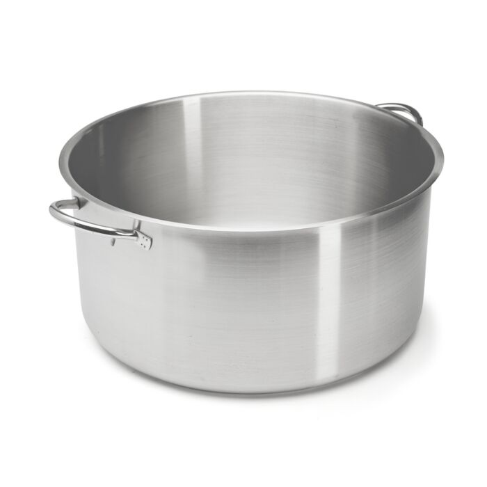 Bratentopf, ganz aus Edelstahl, zum Schmoren von Fleischstücken. Kochgeschirr PRIM'APPETY aus Edelstahl AISI 304 mit Gießrand und Sandwichboden, ermöglicht die homogene Ausbreitung der Hitze auf dem ganzen Boden. Für Induktion geeignet. Robuste und langlebige Profiqualität. Rohrgriffe aus an mehreren Punkten verschweißtem Edelstahl = einfaches und angenehmes Festhalten. Innenflächen glatt. Seidenmatte, polierte und gebürstete Oberfläche. Spülmaschinenfest. Gelegentlich mit Spezial-Polierpaste für Edelstahl polieren, um den ursprünglichen Glanz zurückzugewinnen. Für alle Herdarten, auch Induktion.
