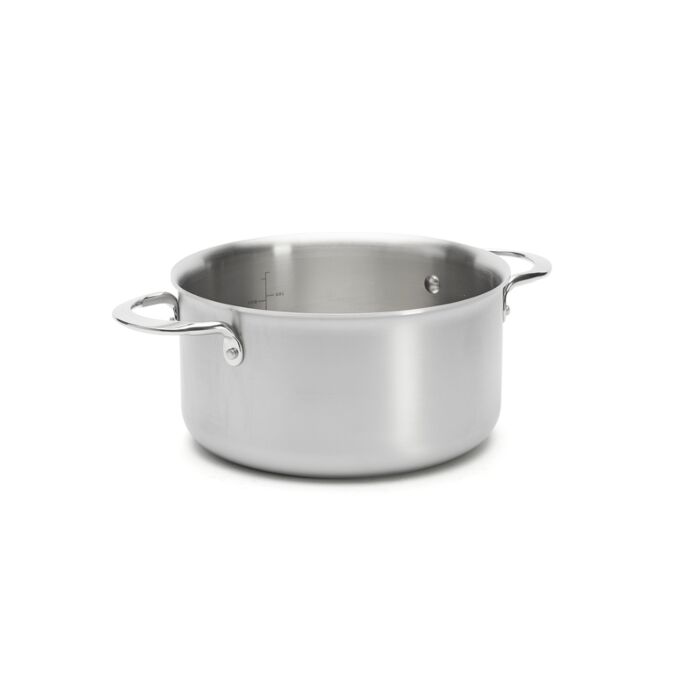 Kochtopf aus mehrschichtigem Edelstahl, 3-lagig. Die Alchimy-Serie hat eine gebürstete Oberfläche, genietete Edelstahlgriffe und ist für alle Herdarten einschließlich Induktion und den Backofen geeignet. Die mehrschichtige Konstruktion führt zu besserer Wärmespeicherung, gleichmäßigerer Erwärmung und präziser Wärmekontrolle. Diese Serie besitzt keinen Sandwichboden, der die Leistung mindern würde. Sehr praktisch: können im Ofen verwendet werden und sind spülmaschinenfest. Die ergonomisch geformten Edelstahlgriffe bleiben auch während des Kochens kühl und sind fest vernietet. Produkteigenschaften der Alchimy-Serie: mehrlagiger Edelstahl (3 Schichten), gebürsteter Edelstahl, kühl bleibende Griffe, für alle Herdarten und den Backofen geeignet, made in France.