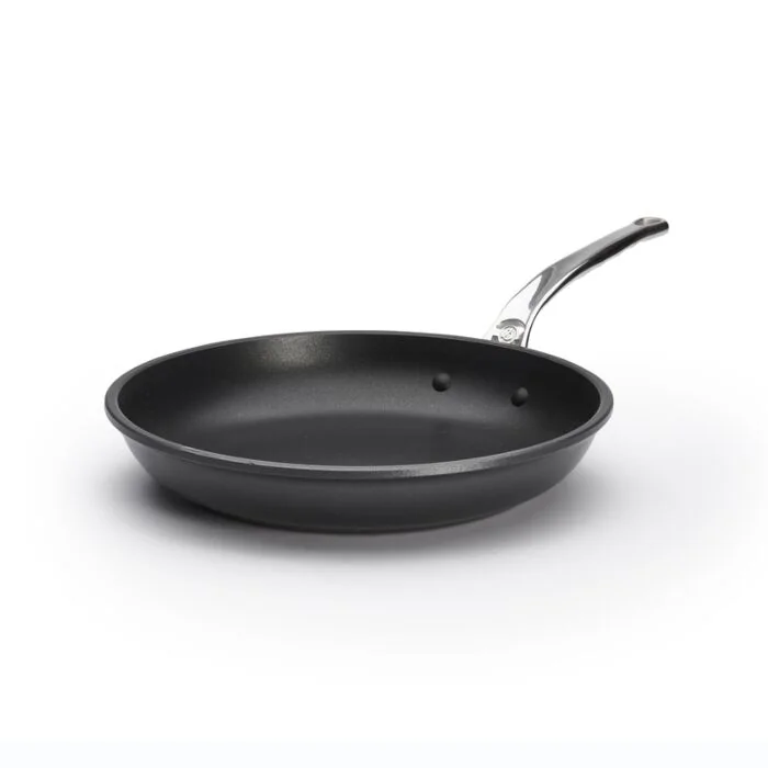 Die runde Pfanne CHOC EXTREME aus antihaftbeschichtetem Aluminium mit Stiel aus Edelstahlguss.