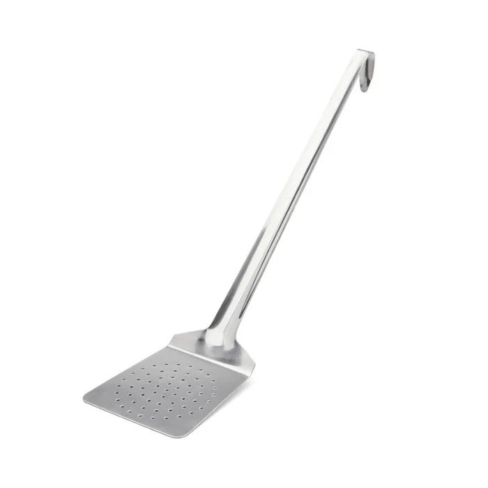 Profigerät aus robustem Edelstahl. Ergonomisch geformter Griff. Hindert das Utensil am Rotieren, auch mit fettigen oder feuchten Händen. Einfache, mühelose Handhabung. Ideale Neigung des Griffs. Für alle Behälter einschließlich tiefe Kochtöpfe. Am Ende der Geräte befindet sich ein stabiler Haken. Geeignet zum Aufhängen an runden oder quadratischen, dünnen oder dicken Vorrichtungen. Gepflegte und entgratete Oberfläche. Pflege: spülmaschinenfest.