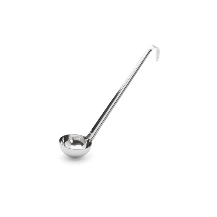 Profigerät aus robustem Edelstahl. Ergonomisch geformter Griff. Hindert das Utensil am Rotieren, auch bei fettigen oder feuchten Händen. Gute, mühelose Handhabung. Ideale Neigung des Griffs. Für alle Behälter einschließlich tiefer Kochtöpfe. Am Ende des Geräts befindet sich ein stabiler Haken. Geeignet zum Aufhängen an runden oder quadratischen, dünnen oder dicken Vorrichtungen. Gleichmäßige Rundungder gesamte Kuppel. Unverzichtbar für effizientes Ausgießen. Gepflegte Oberfläche und Entgratet. Pflege: spülmaschinenfest.