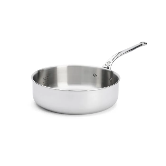 Sauteuse mit geraden Wänden und Gießrand, ideal zum Sautieren von kleinem Gemüse und von Fleischstücken. Formbeständiges Kochgeschirr mit mehrschichtigem Material: äußere Lagen aus Edelstahl, innere aus Aluminiumlegierungen. Ultrareaktives Material: sehr rascher Temperaturanstieg, aber auch eine prompte Reaktion ohne Nachgaren, wenn das Kochgeschirr vom Herd genommen wird. Eine sehr gute Kontrolle des Garprozesses. Gleichmäßige Verteilung der Hitze auch über die Wände und perfekter Wärmekreislauf: Homogene Erhitzung. Ideal geeignet zum Reduzieren und für Saucen. Stiel aus Edelstahlguss, vernietet: ergonomisch, liegt bequem in der Hand; schlichte Eleganz. Der Stiel behält eine niedrige Temperatur. Hochwertige Produktserie, modernes, elegantes Design. Hochwertige Spiegelpolitur. Tipp: Die Temperatur nur nach und nach erhöhen, insbesondere bei Induktionsherden, weil das Material die Wärme hervorragend verteilt. Hygienisch: spülmaschinenfest. Gelegentlich außen mit Polierpaste polieren, um den ursprünglichen Glanz zurückzugewinnen. Für alle Herdarten, auch Induktion.