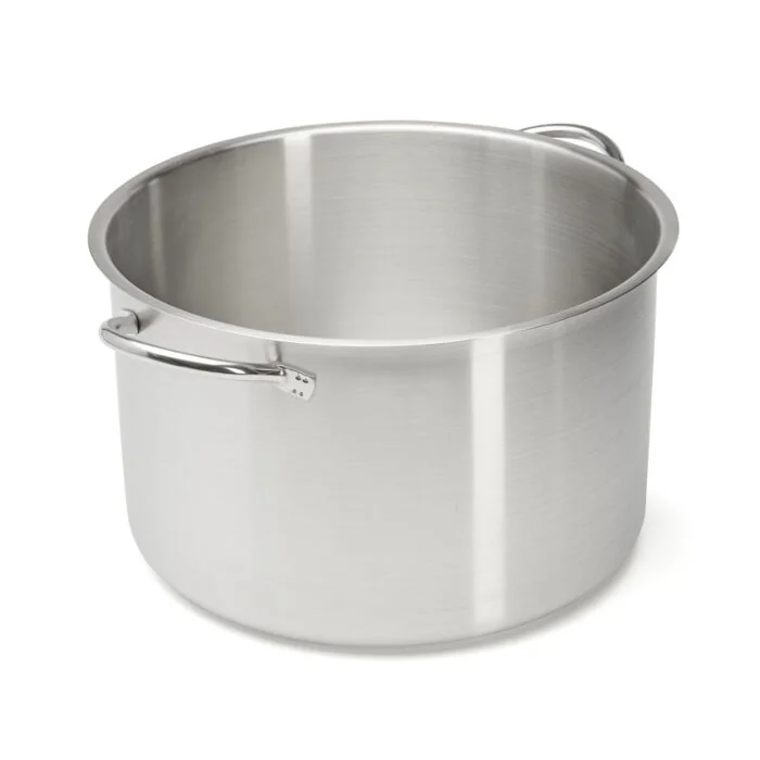 Der Kochtopf mit hohen Wänden eignet sich ideal zum langsamen Garen auf kleiner Flamme und zum Kochen mit viel Wasser, z.B. von Gemüse usw. Die Feuchtigkeit bleibt im Behälter. Kochgeschirr PRIM'APPETY aus Edelstahl AISI 304 mit Gießrand und Sandwichboden, ermöglicht die homogene Ausbreitung der Hitze auf dem gesamten Boden. Für Induktion geeignet. Robuste und langlebige Profiqualität. Rohrgriffe aus an mehreren Punkten verschweißtem Edelstahl = einfaches und angenehmes Festhalten. Innenflächen glatt. Seidenmatte, polierte und gebürstete Oberfläche. Spülmaschinenfest. Gelegentlich mit Spezial-Polierpaste für Edelstahl polieren, um den ursprünglichen Glanz zurückzugewinnen. Für alle Herdarten, auch Induktion.