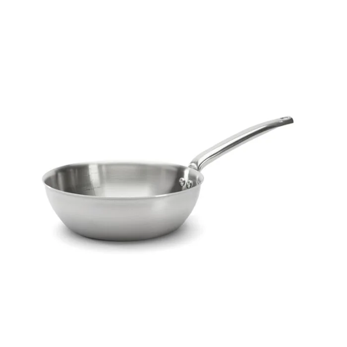 Konische Sauteuse aus mehrschichtigem Edelstahl, 3-lagig. Die Alchimy-Serie hat eine gebürstete Oberfläche, genietete Edelstahlgriffe und ist für alle Herdarten einschließlich Induktion und den Backofen geeignet. Die mehrschichtige Konstruktion führt zu besserer Wärmespeicherung, gleichmäßigerer Erwärmung und präziser Wärmekontrolle. Diese Serie besitzt keinen Sandwichboden, der die Leistung mindern würde. Sehr praktisch: können im Ofen verwendet werden und sind spülmaschinenfest. Die ergonomisch geformten Edelstahlgriffe bleiben auch während des Kochens kühl und sind fest vernietet. Produkteigenschaften der Alchimy-Serie: mehrlagiger Edelstahl (3 Schichten), gebürsteter Edelstahl, kühl bleibende Griffe, für alle Herdarten und den Backofen geeignet, made in France.
