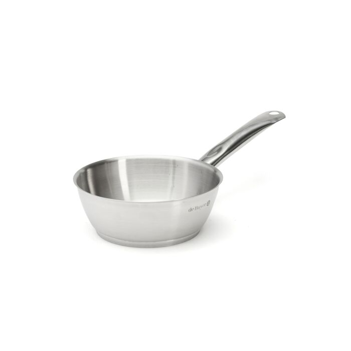 Gewölbte Sauteuse mit weitem Gießrand, ideal zum Reduzieren von Saucen. Form ermöglicht besseres Verdampfen.